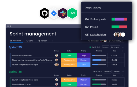 Consolidate all your vital software development activities within monday dev. Allow your development and product teams to spend less time chasing scattered updates on tasks, bugs, feature requests, and code changes, and more time effectively building your products and resolving development roadblocks. Our experts are proficient in leveraging the full suite of monday dev features β from customisable sprint workflows and automated build notifications to integrated version control logging and insightful agile performance dashboards β ensuring your teams are always efficient in their development cycles, effective in their coding and bug resolution, and empowered to meet their release deadlines and quality objectives.