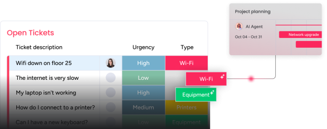 Consolidate all your vital service management activities within monday service. Allow your support and service delivery teams to spend less time chasing scattered updates on tickets, service requests, and user interactions, and more time effectively supporting your customers and resolving issues. Our experts are proficient in leveraging the full suite of monday service features β from customisable ticket workflows and automated responses to integrated communication logging and insightful performance dashboards β ensuring your teams are always efficient in their support processes, effective in their resolutions, and empowered to meet their service level objectives.